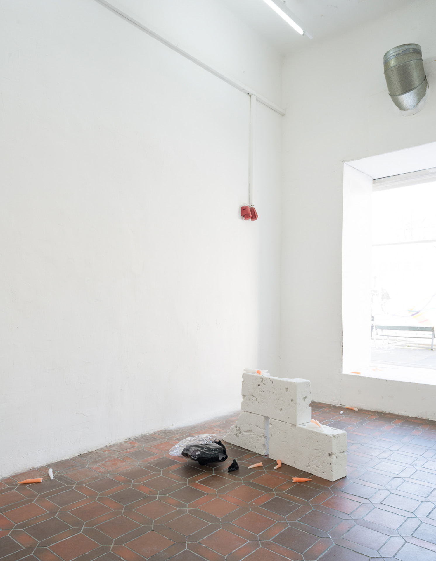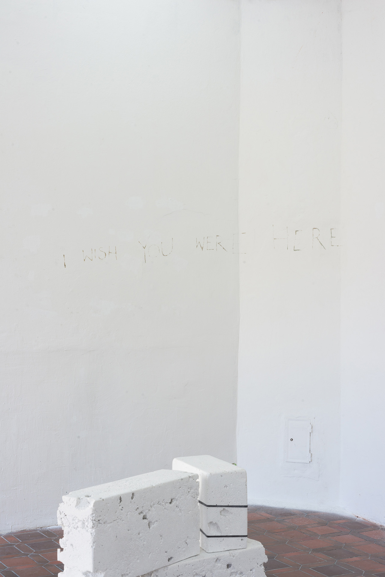 Weißbeton, Metall, Wachs, Glas
